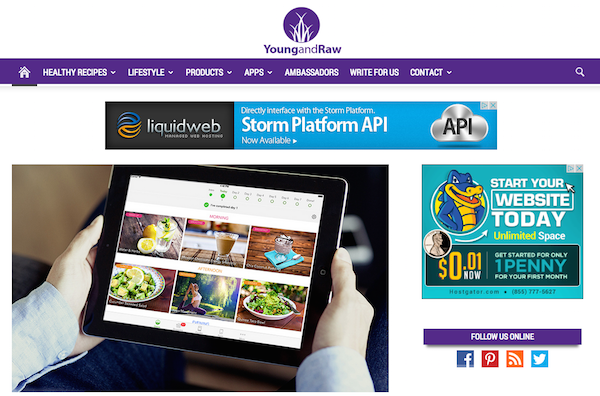 Young and Raw is a very powerful website that focuses on healthy recipes and a healthy lifestyle. It has a heavy readership, with all of their blog posts receiving thousands of views and social shares. For instance, there is a post about healthy uses for apple cider vinegar that has received over 25,000 social shares alone. This website monetizes its traffic with Google AdSense as well as direct advertising.
